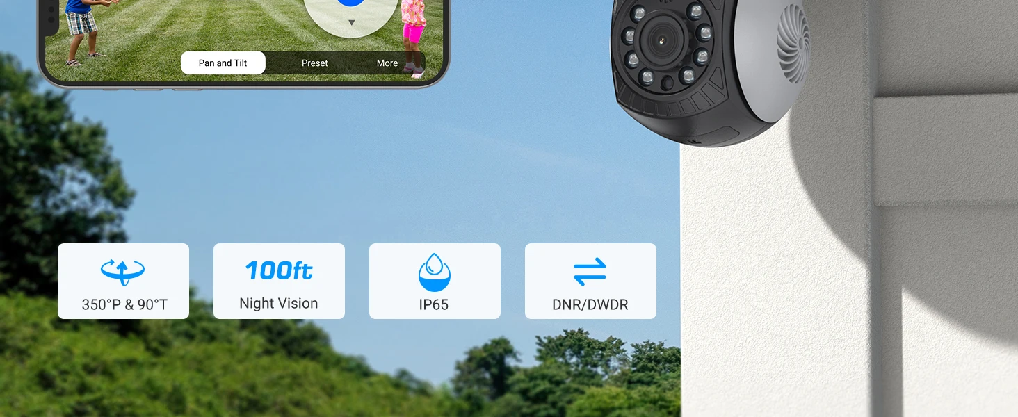 Featuring 350° pan and 90° tilt, this camera can check a wider range of area, while traditional ones are pointed at a fixed angle. And it's more convenient that you may pan and tilt the camera via DVR or your phone!