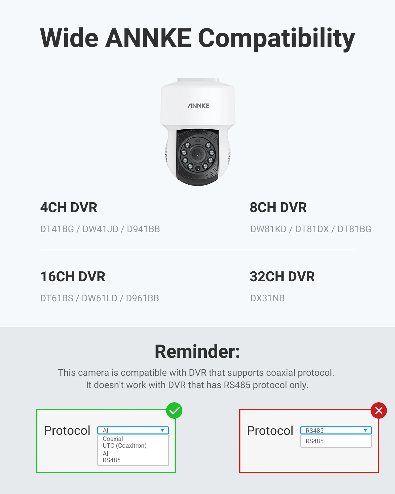 Rated IP65 weatherproof, this camera is suitable for indoor or outdoor usage that works from -40°F to 140°F. Whether you need a security solution for your home or business, this camera can be the best partner with your DVR.