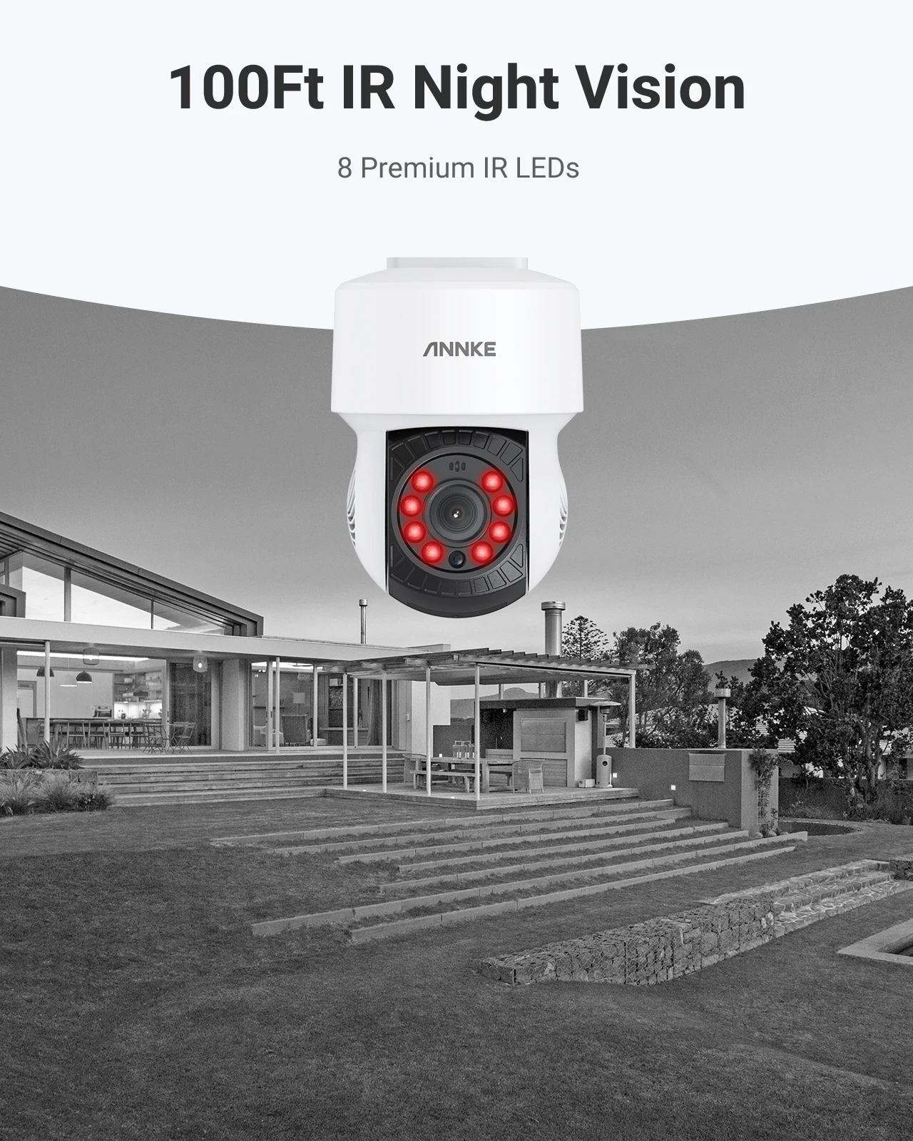 Up to 100Ft B&W Night Vision for Peace of Mind