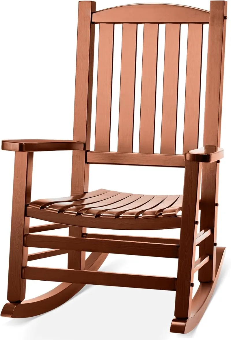 Wood Outdoor Rocking Chair, W/400Lbs Support & High Backrest